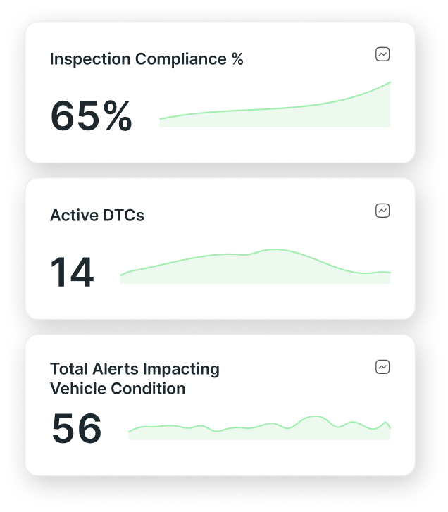 Active DTCs, vehicle condition alerts, inspection compliance, and fuel efficiency — tracked across every vehicle in one dashboard, so your team always knows what needs attention and when.